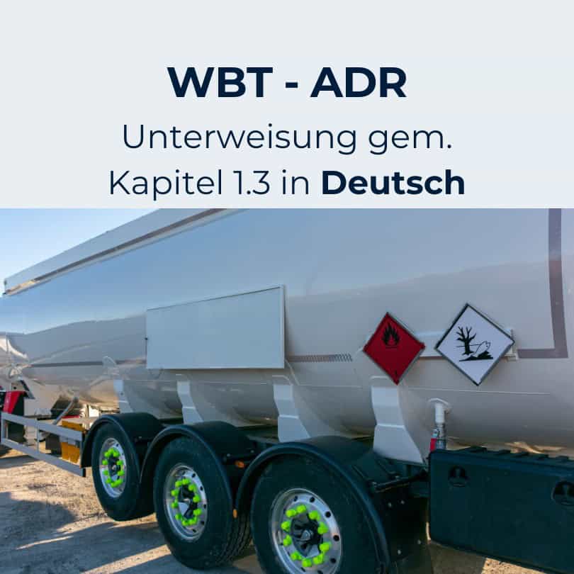 Dieses WBT vermittelt das nötige Wissen nach Kapitel 1.3 ADR – praxisnah, kompakt und rechtssicher. Ziel ist es, dass alle an der Gefahrgutbeförderung Beteiligten ihre Aufgaben verstehen, sicher ausführen und gesetzeskonform dokumentieren können.